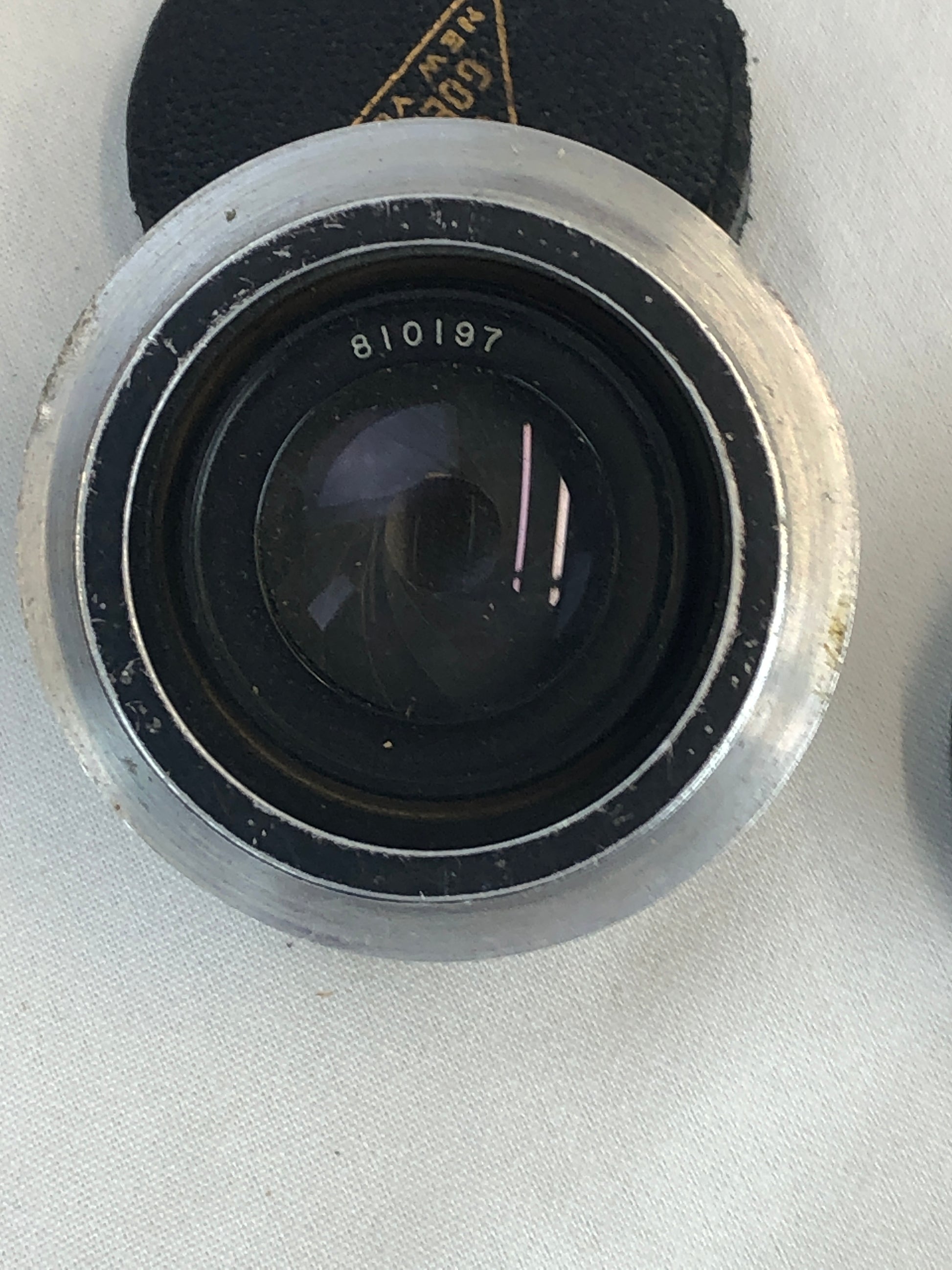 Shows expected wear for its age, including finish wear and internal dust. Glass appears intact, and aperture mechanism is present. Sold as a vintage/collectible optical piece.